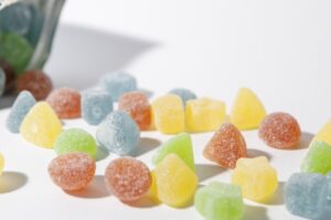 グミとゼリーは同じゼラチンを使っていますが、含まれる水分の量が大きく異なります。