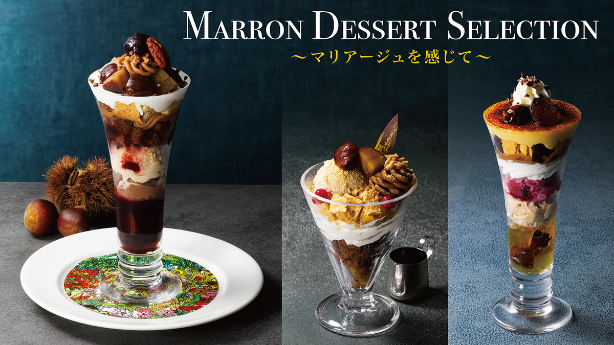例えば、「琥珀マロンのブリュレパフェ」にはジャスミン茶、「フォレ・ノワール仕立てのマロンパフェ」にはルイボスティが推奨されています。