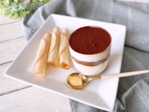 ティラミスに欠かせない材料が「マスカルポーネチーズ」です。これはイタリア原産のクリームチーズの一種で、ティラミス独特のコクを出すために欠かせません。